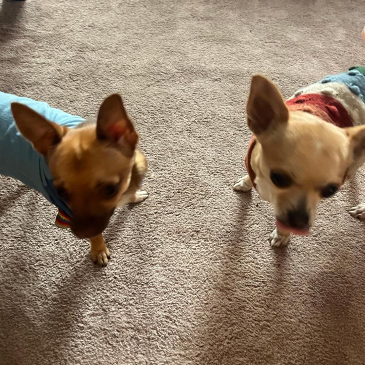 The dogs are lovely and quite low maintenance. They love people but not other dogs. They have 3 short walks a day, 2 meals, a few snacks and as many cuddles as you’ll give them.