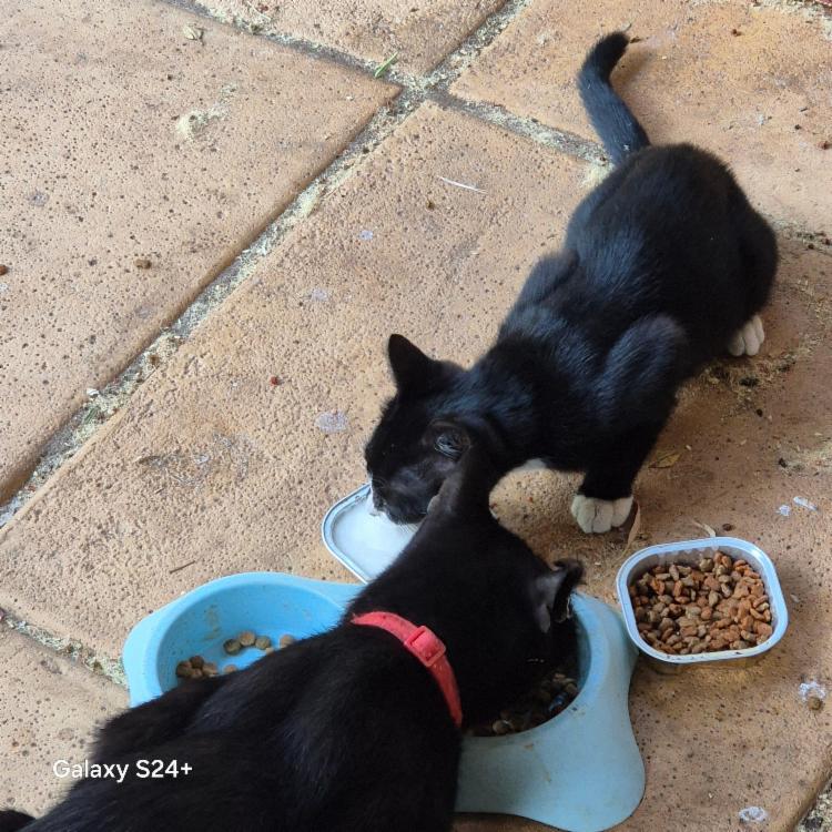 Three (3) outdoor cats who are fed twice daily.