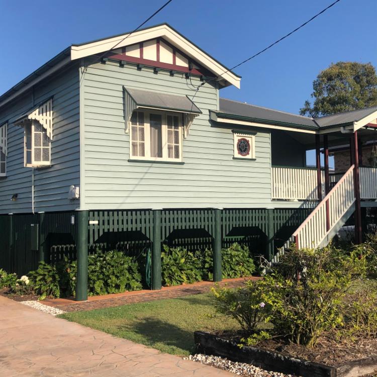 We have an old Queenslander in beautiful condition, 3 bedrooms and 2 bathrooms. Plenty of outdoor entertaining space and a bbq. No pool.