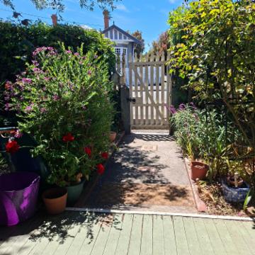 Old weatherboard charming cottage. One fluffy medium sized dog and a cat.