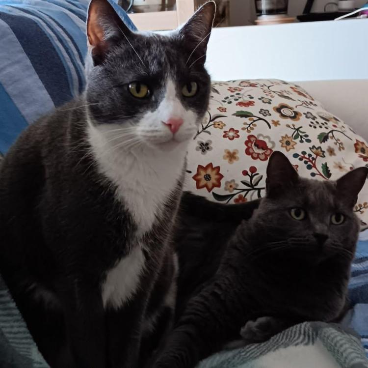 Care for 2 cats. Ash (female), Russian blue, 5 and half years old and Dusty (male), domestic short hair, 3 and half years old.