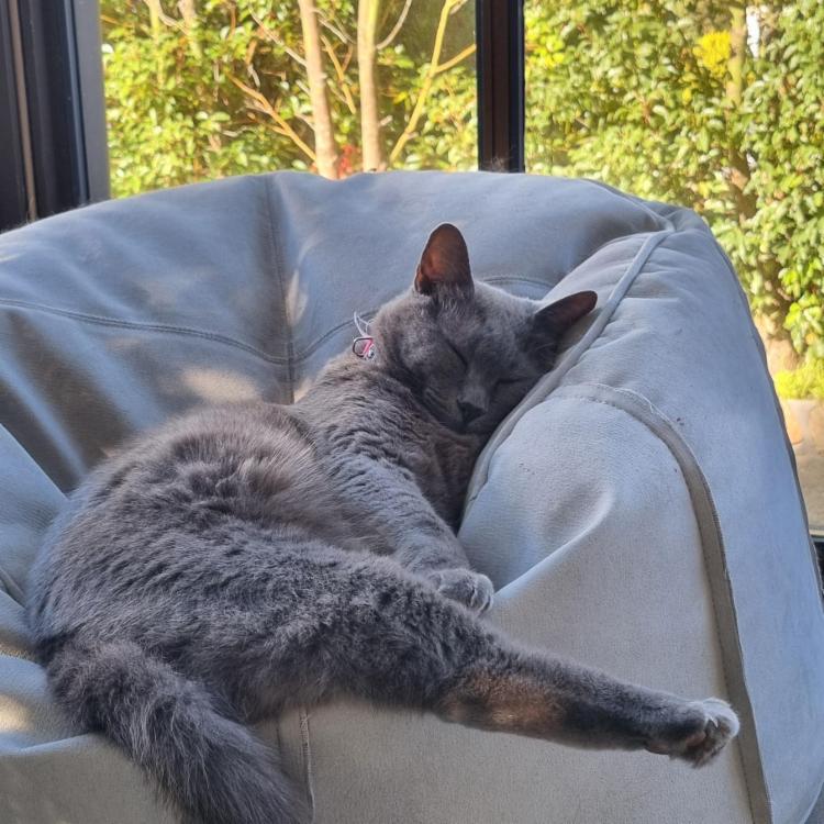 Bous: Our 14-year-old Russian Blue is your typical cat, independent but will show affection when it is cold or she wants food. She gets cookies in the morning and wet food in the evening. Overnight, she’ll have access to the kitty litter, which may need changing about once a week (she mostly goes outside during the day). Bous can sometimes be a little vocal late at night, so we usually close her into the front room to avoid disturbing human sleep where she loves to sleep in a cardboard box (cats and their obsession with boxes!).
