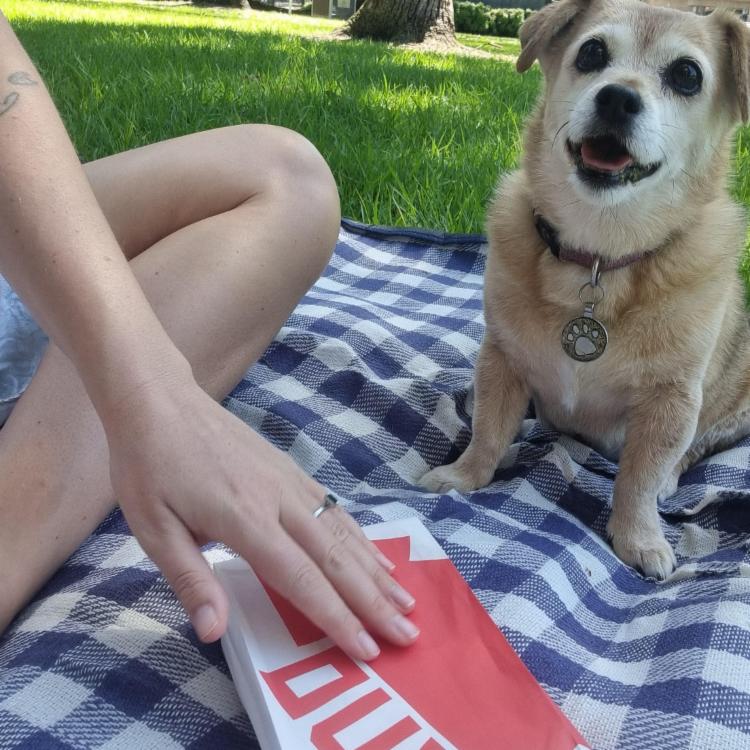 Cali: Our 13-year-old Jack Russell X is a sweet and affectionate dog who loves cuddles and walks. She’s toilet-trained and follows a simple schedule: she heads out for her nightly toilet around 8 PM and holds until morning, on the odd occasion she will bark at the backdoor if she needs to go to the toilet overnight and thinks the pet door is locked. Cali has a specific meal routine: a dentastick and cookies in the morning, and homemade chicken/fish and rice for dinner (pre-made for you!).